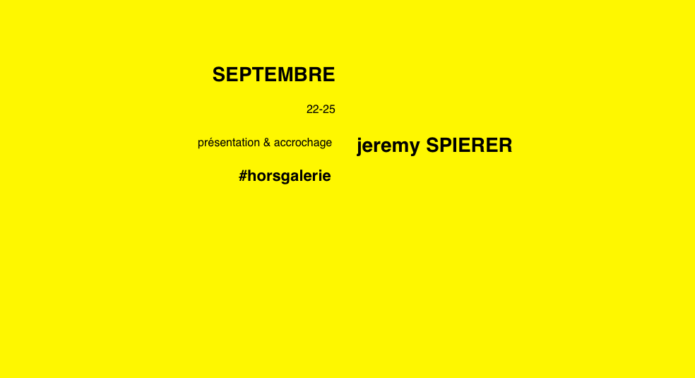 I invite you to discover the presentation of “jeremy SPIERER”, next week from September 22 to 25.
