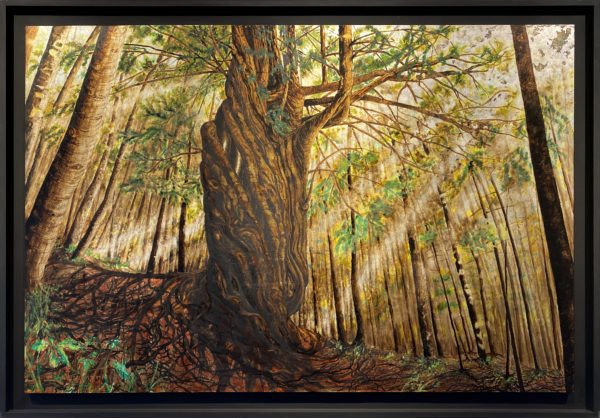 Technique mixte sur toile laminée à la feuille d’argent