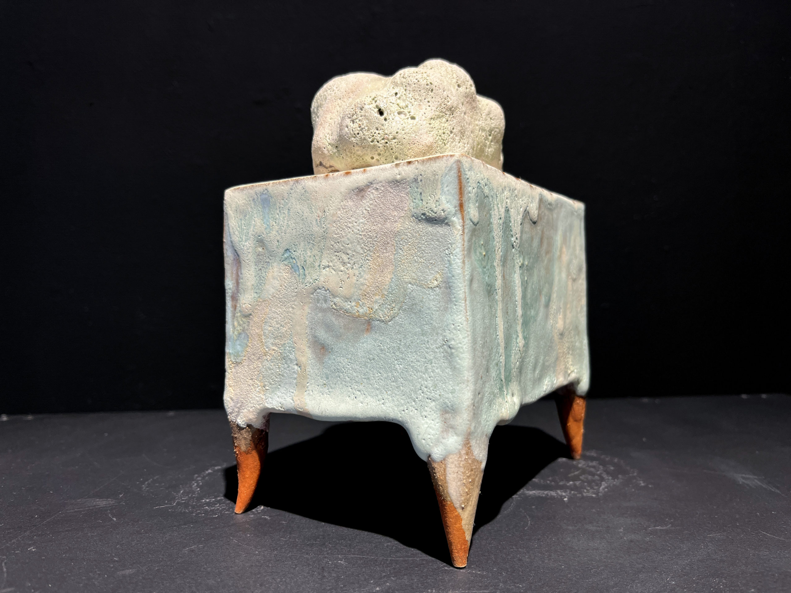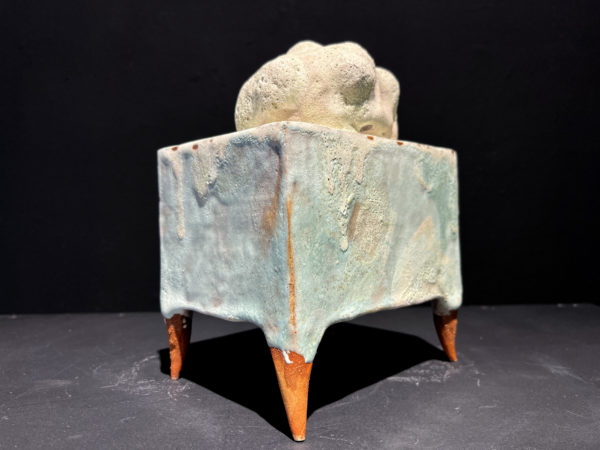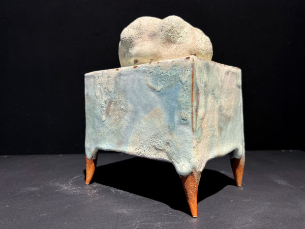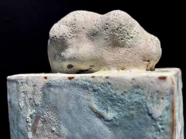C’est une œuvre unique. Céramique. Grès blanc, émaux, cuisson 1250°.