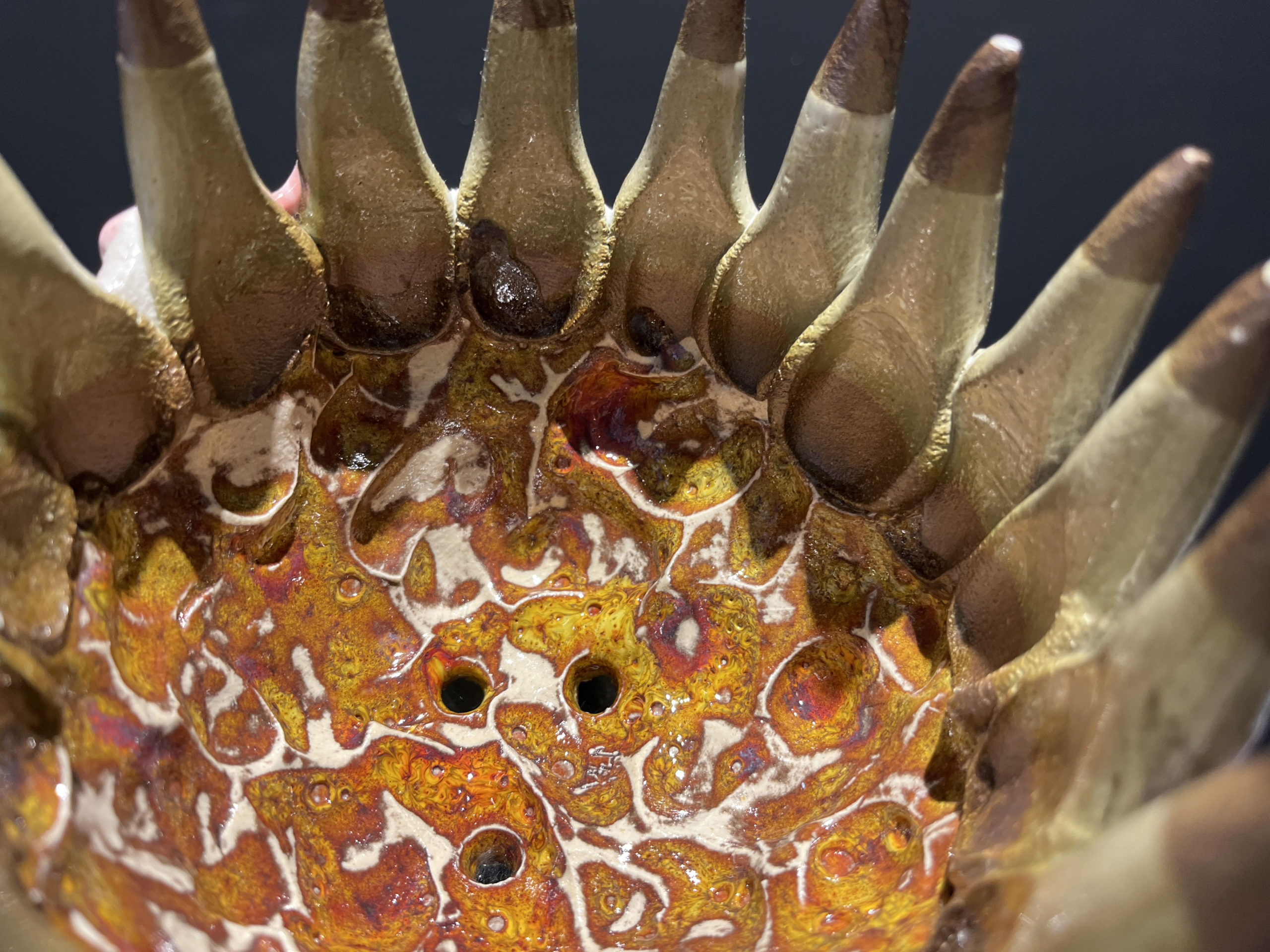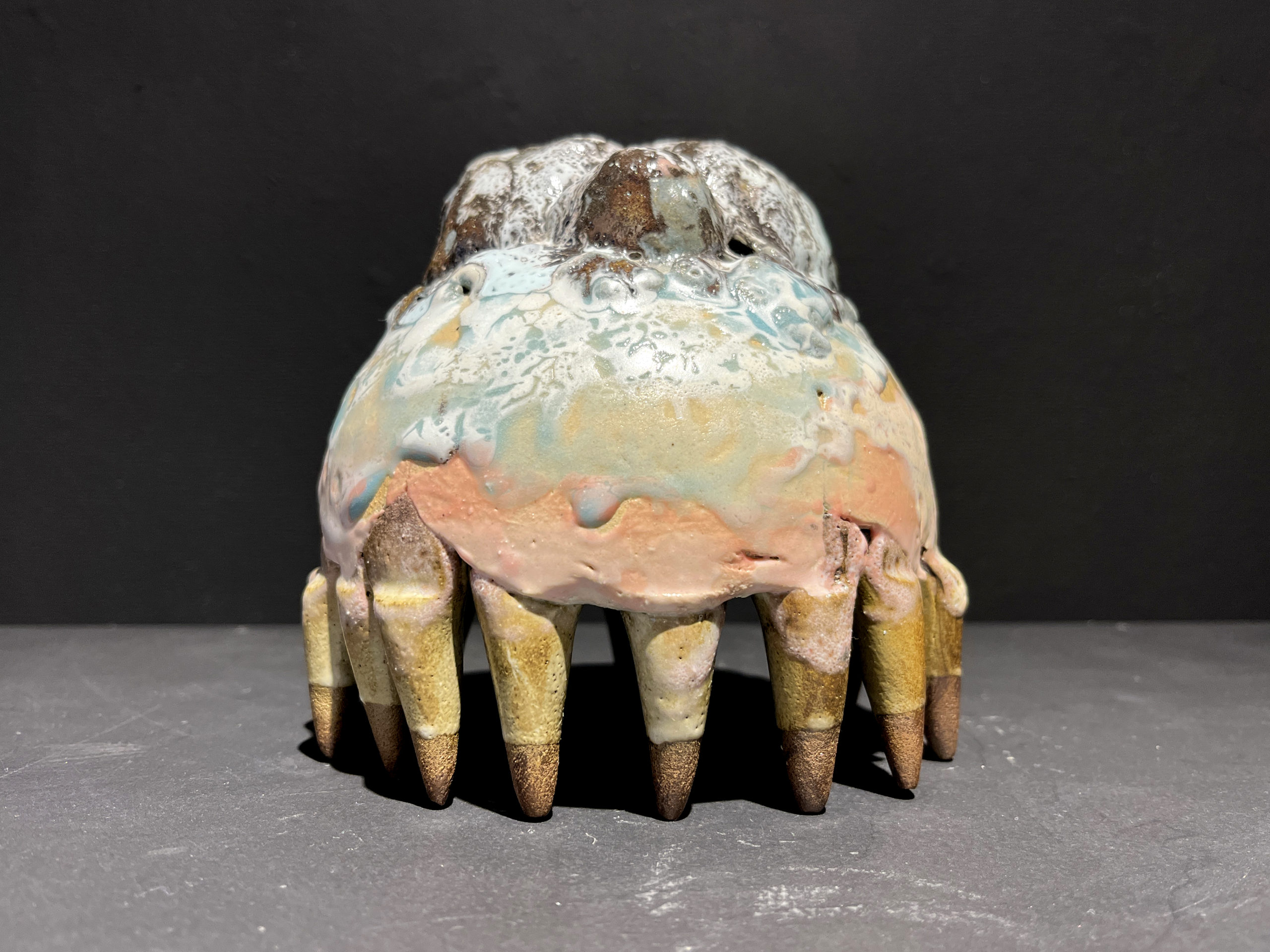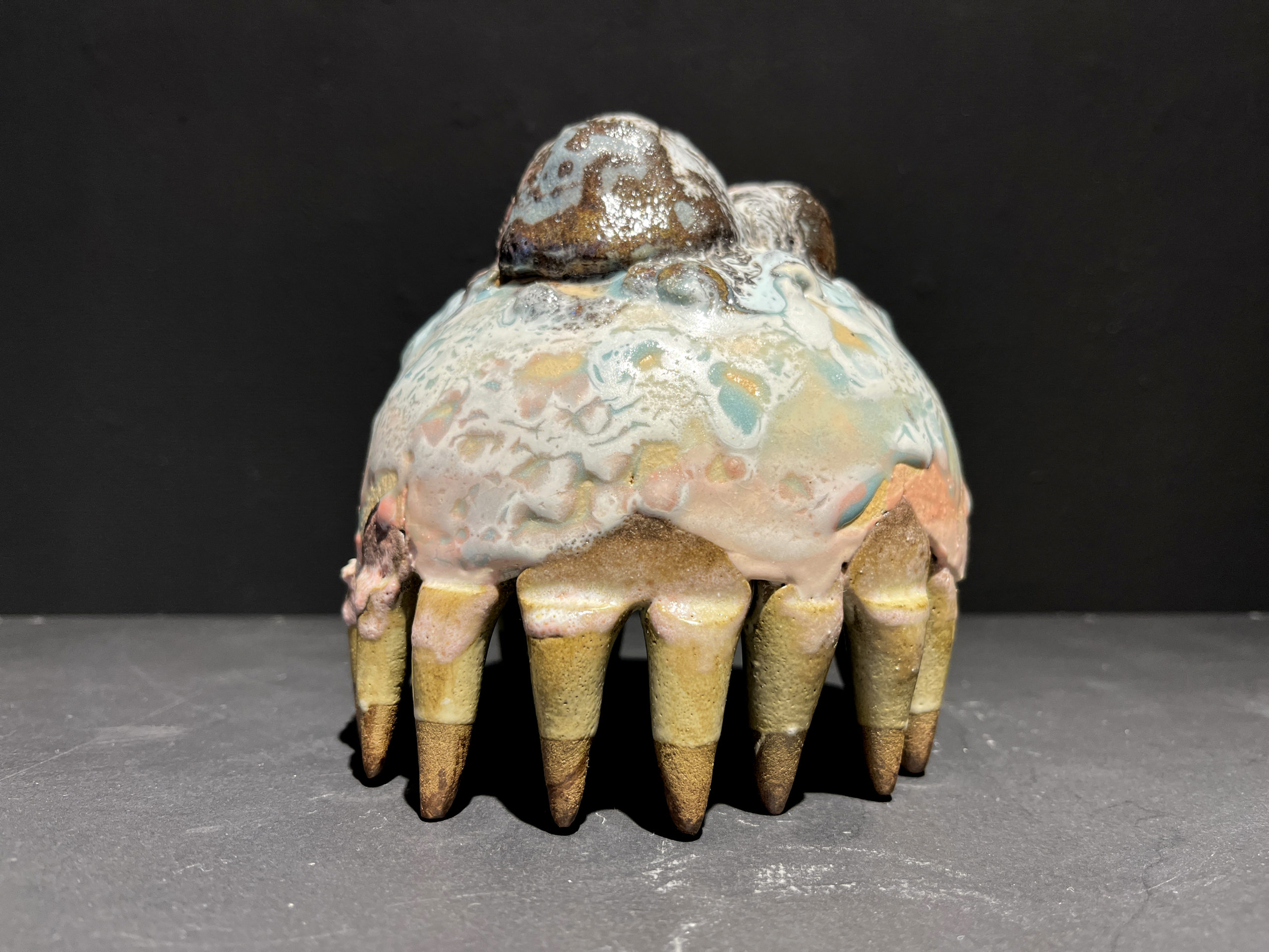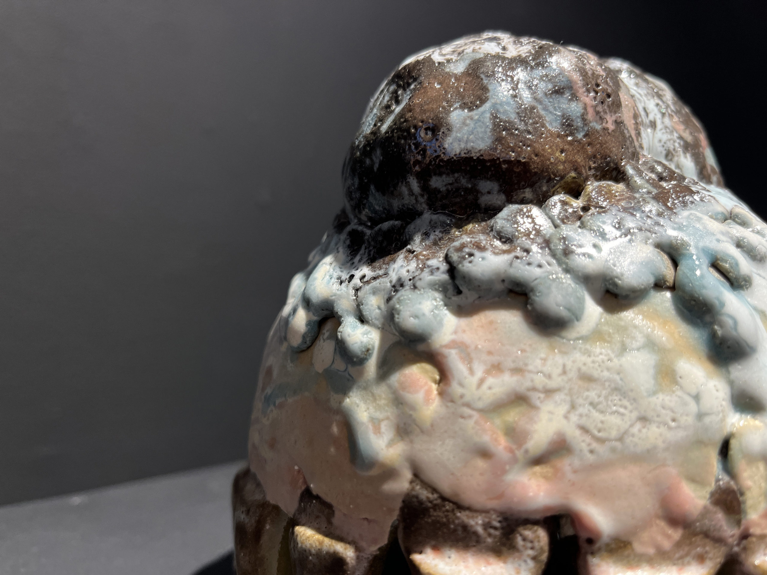 C’est une œuvre unique. Céramique. Grès blanc, émaux, cuisson 1250°.