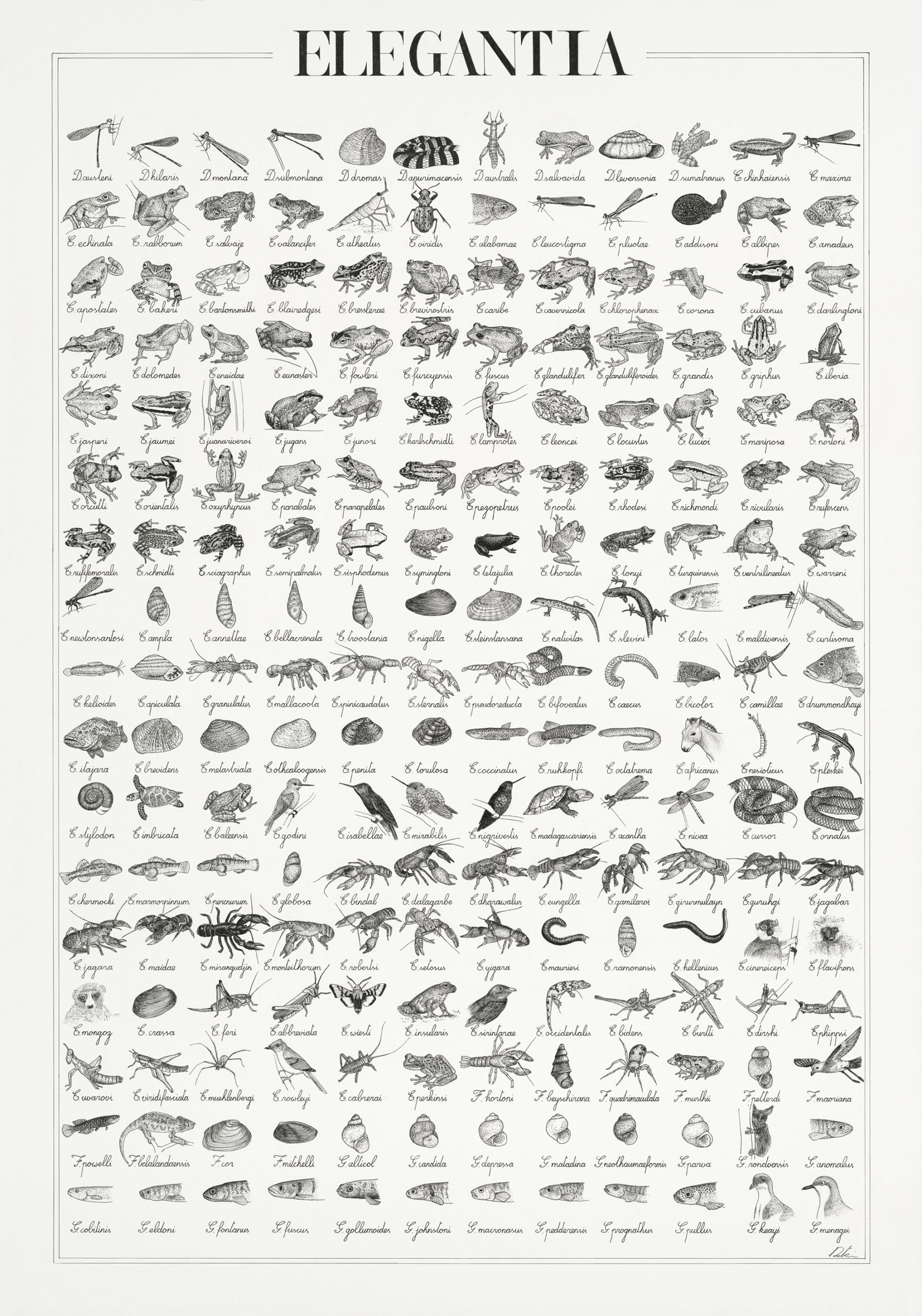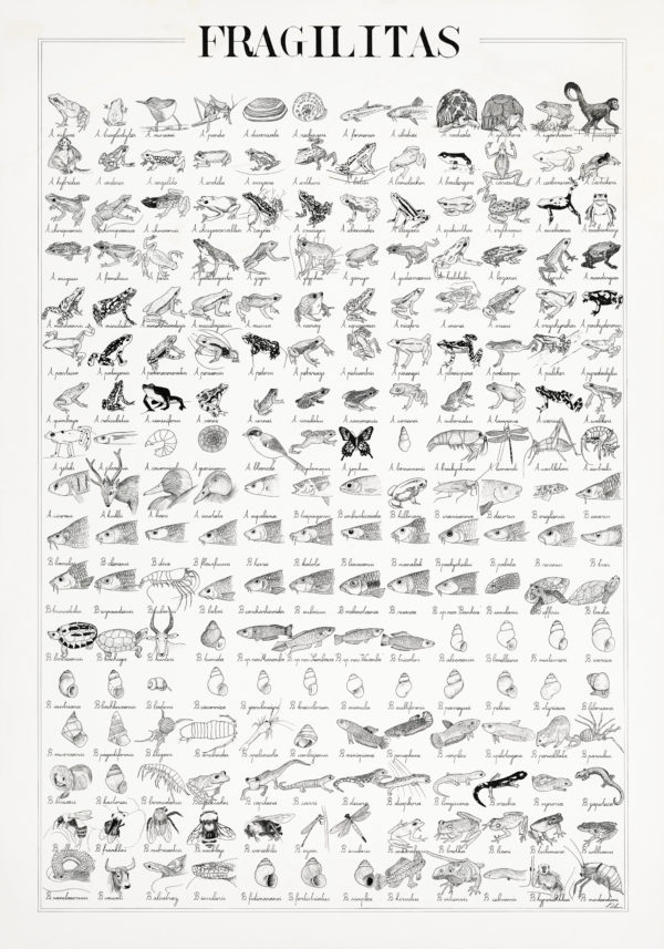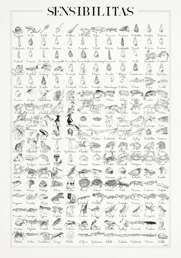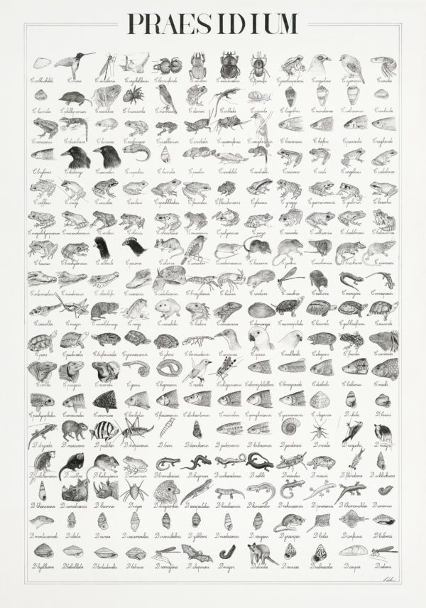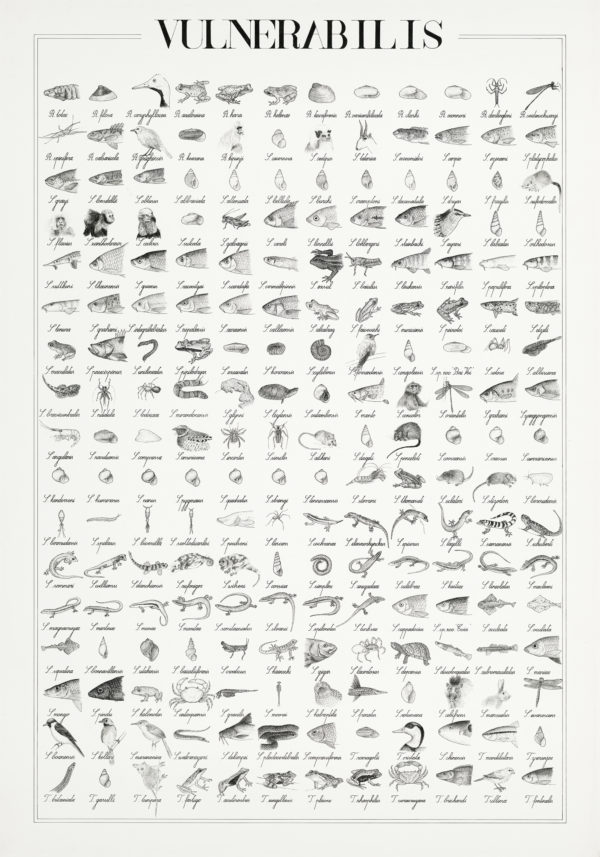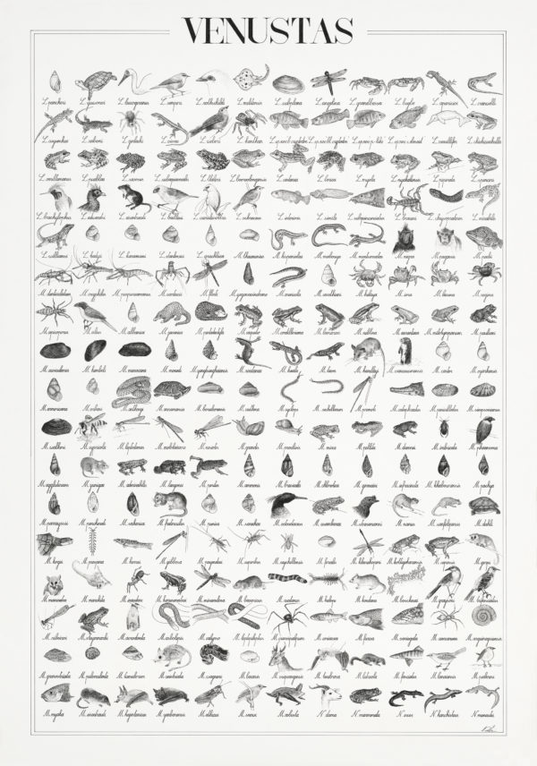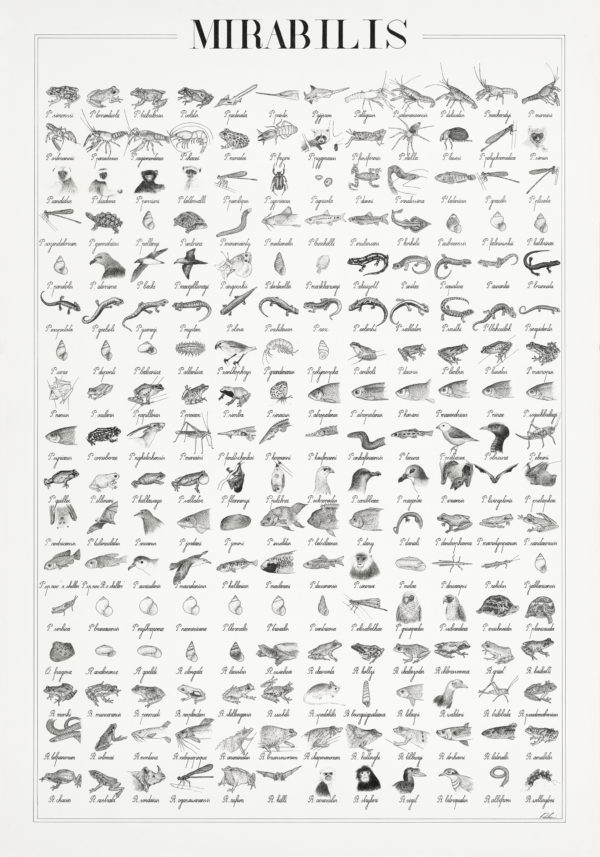 Le « Project 2635 » est une création démarrée en novembre 2017. L’objectif de cette œuvre est de mettre en image 2635 animaux en danger critique d’extinction. Réalisé à l’encre de Chine sous forme de planches scientifiques, ce projet de sensibilisation et de mémorial prend la forme de 13 planches de 100 x 70 cm. Le projet a nécessité trois ans de travail et le constat dramatique est qu’aujourd’hui, le nombre de ces animaux a augmenté à tel point qu’en septembre 2024, l’Union Internationale pour la Conservation de la Nature (UICN) a classé près de 4 000 espèces en danger critique d’extinction, c’est-à-dire confrontées à des menaces si graves qu’elles pourraient bientôt disparaître à l’état sauvage.