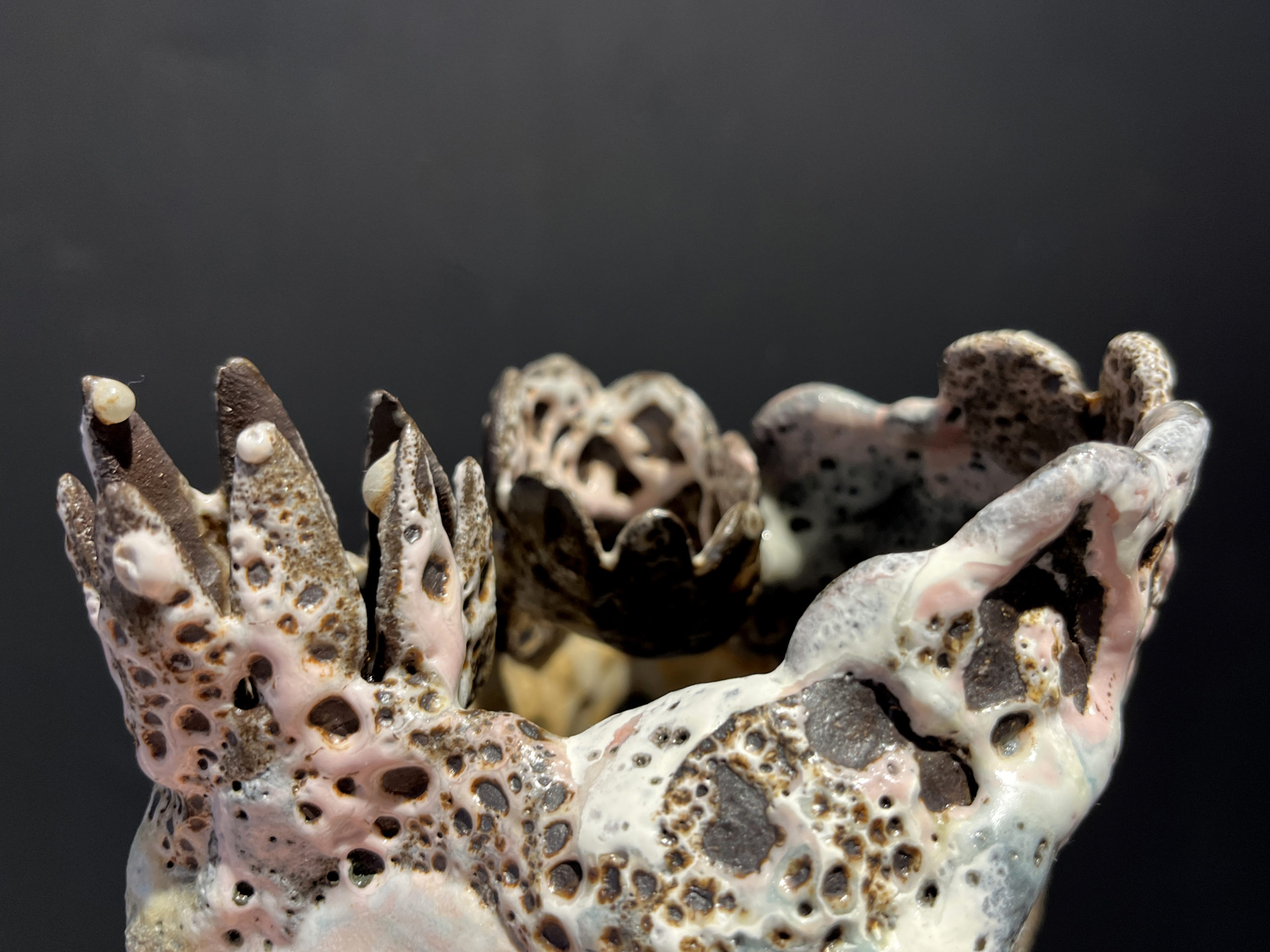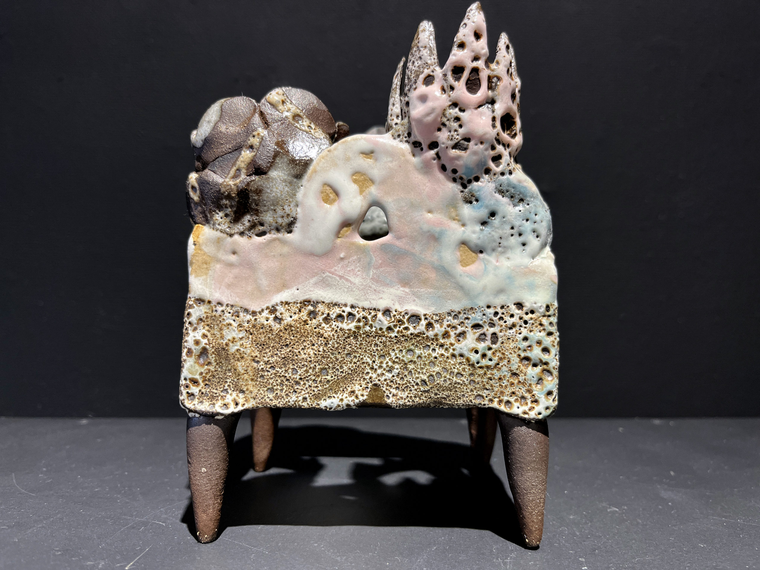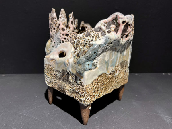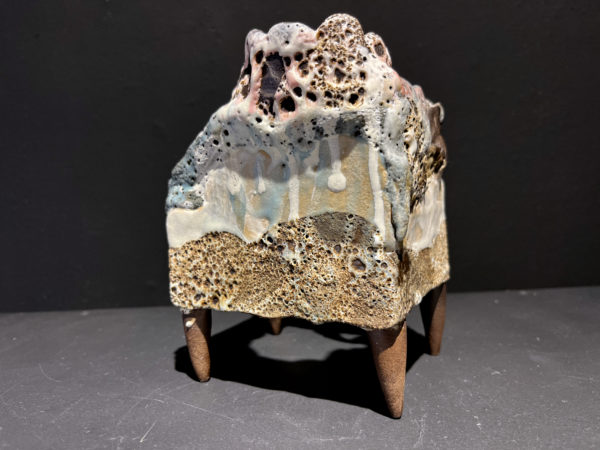 C’est une œuvre unique. Céramique. Grès blanc, émaux, cuisson 1250°.