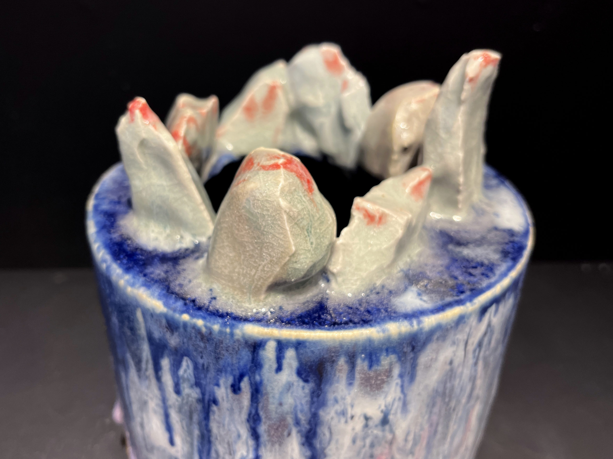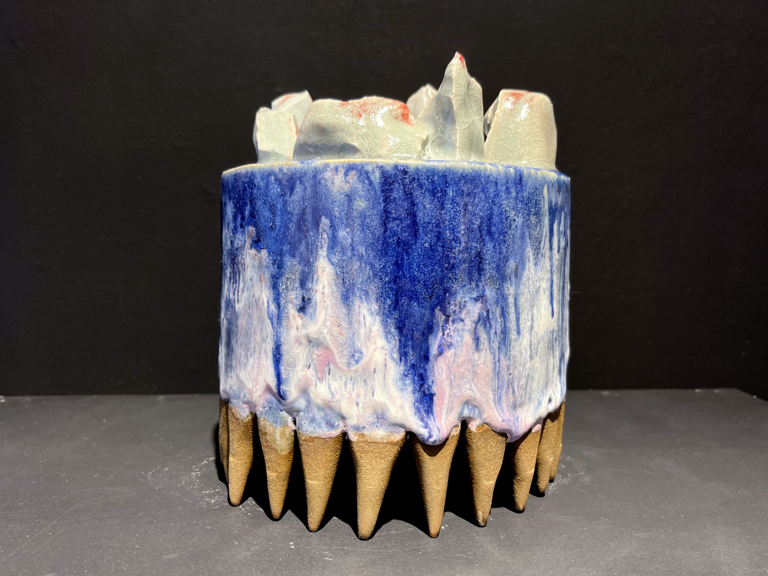 C’est une œuvre unique. Céramique. Grès blanc, émaux, cuisson 1250°.