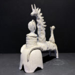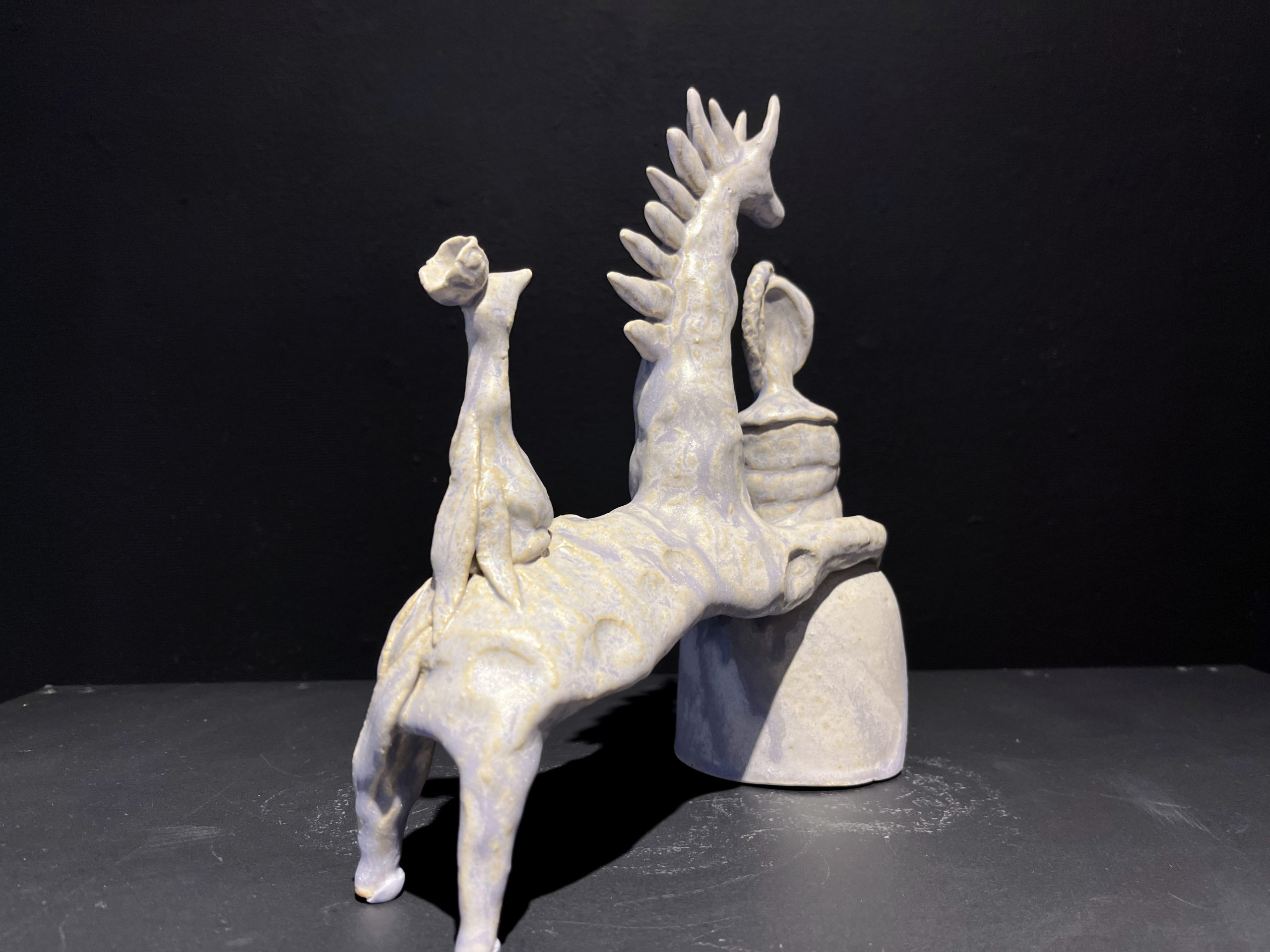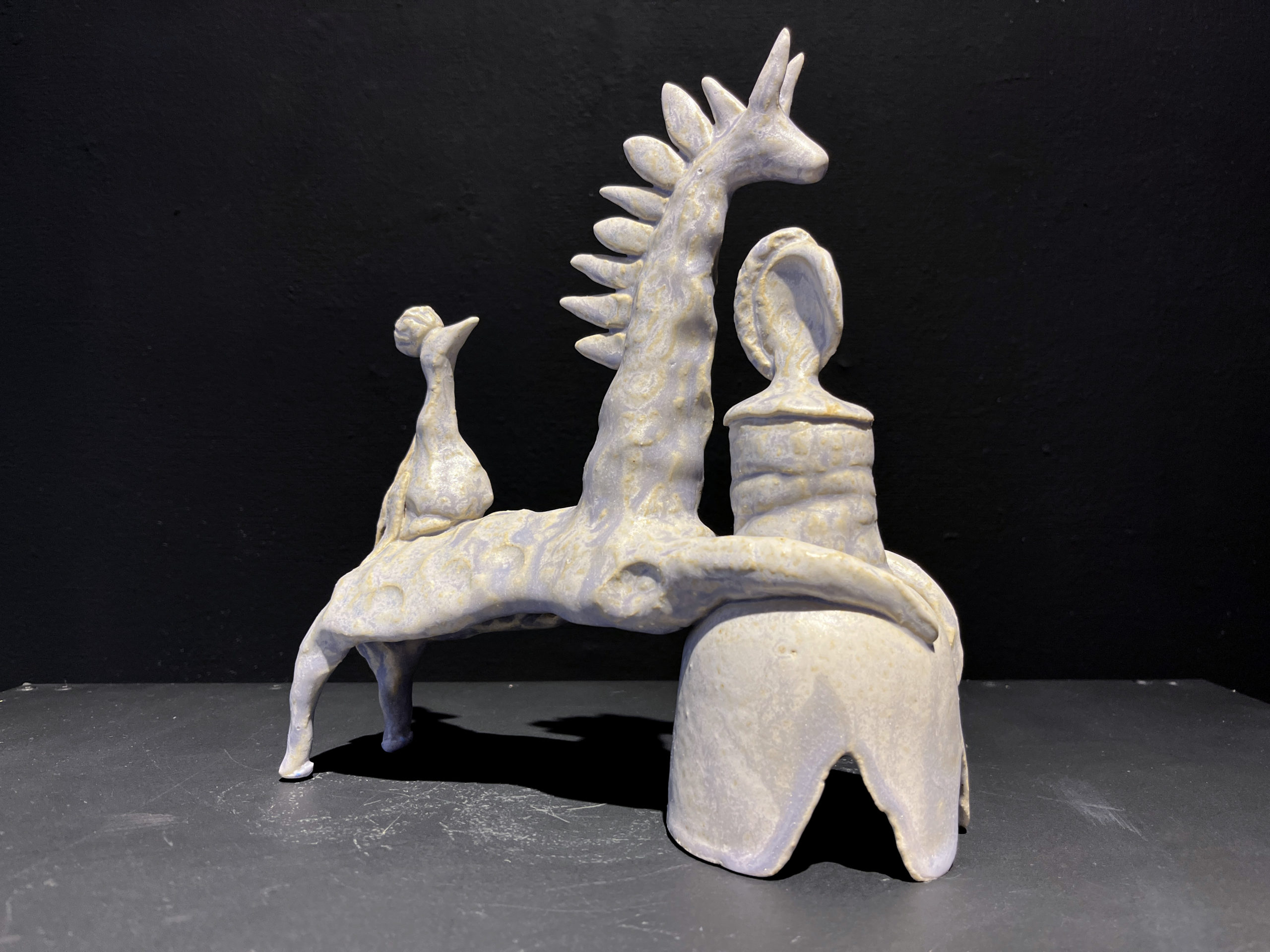 C’est une œuvre unique. Céramique. Grès blanc, émaux, cuisson 1250°.